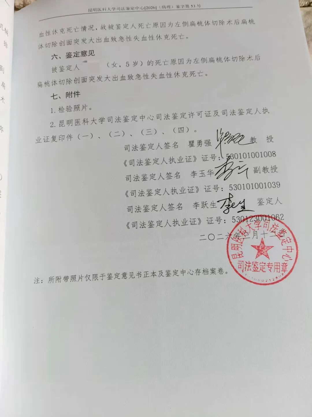 王法决然炫夸,孩子左侧扁桃体位置创面疏忽不服,深达肌层,肌肉组织露出,可见血凝块。姚青据此和病院相通,对方却暗示“手术莫得任何问题,患者若觉得是院方株连,应我方去找凭据”。这么的回应令姚青十分震怒。她于2月16日向会泽县中医病院会通泽县卫生健康局提交了书面核查请求,条目三日内回应,但于今未收到任何回复。