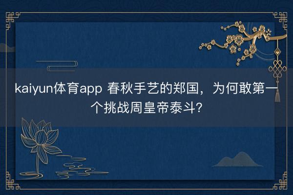 发布于:天津市上一篇:kaiyun体育app 春秋手艺的郑国,为何敢第一个挑战周皇帝泰斗?