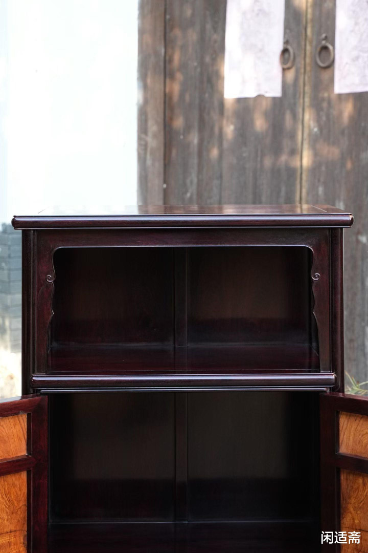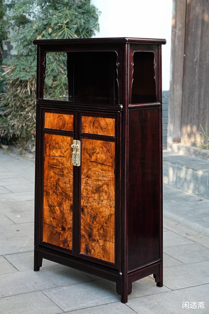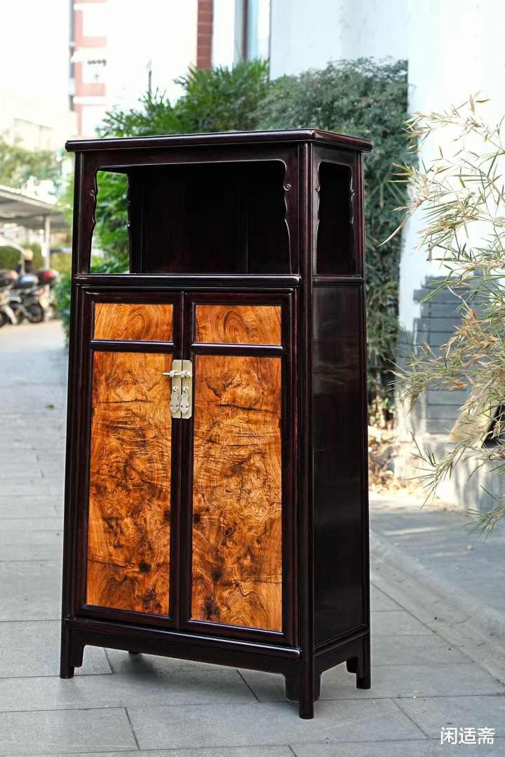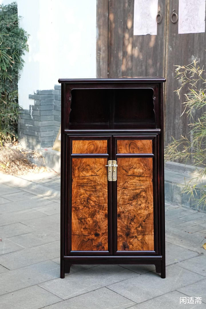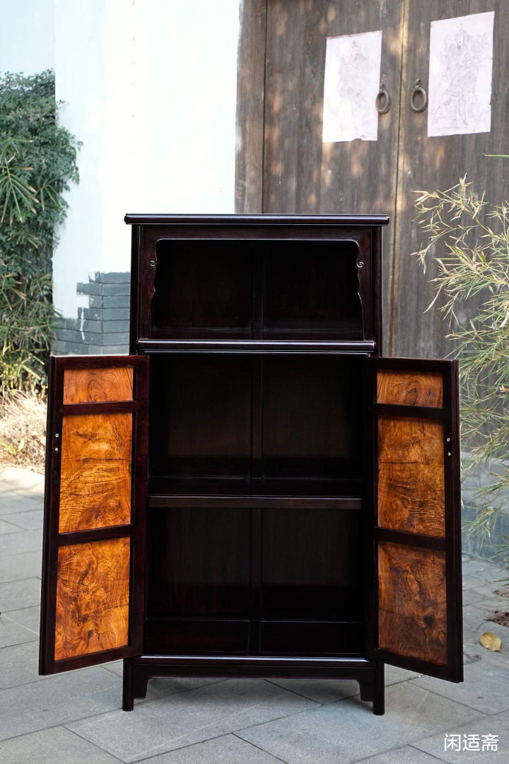 器物形制解任经典万历柜形势,比例匀称、线条运动,无一点冗余测验,尽较着式产品“检朴而不通俗”的精髓。柜体上部设通透亮格,形制朴直,可罗列瓷瓶、雅玩、古籍善本,既能彰显主东说念主的精良品尝,又能让器物与空间有趣横生;下部为对开柜门,严丝合缝、开合顺滑,里面空间规整,可收纳奥秘器物、四季衣裳,兼顾好意思不雅与实用性。